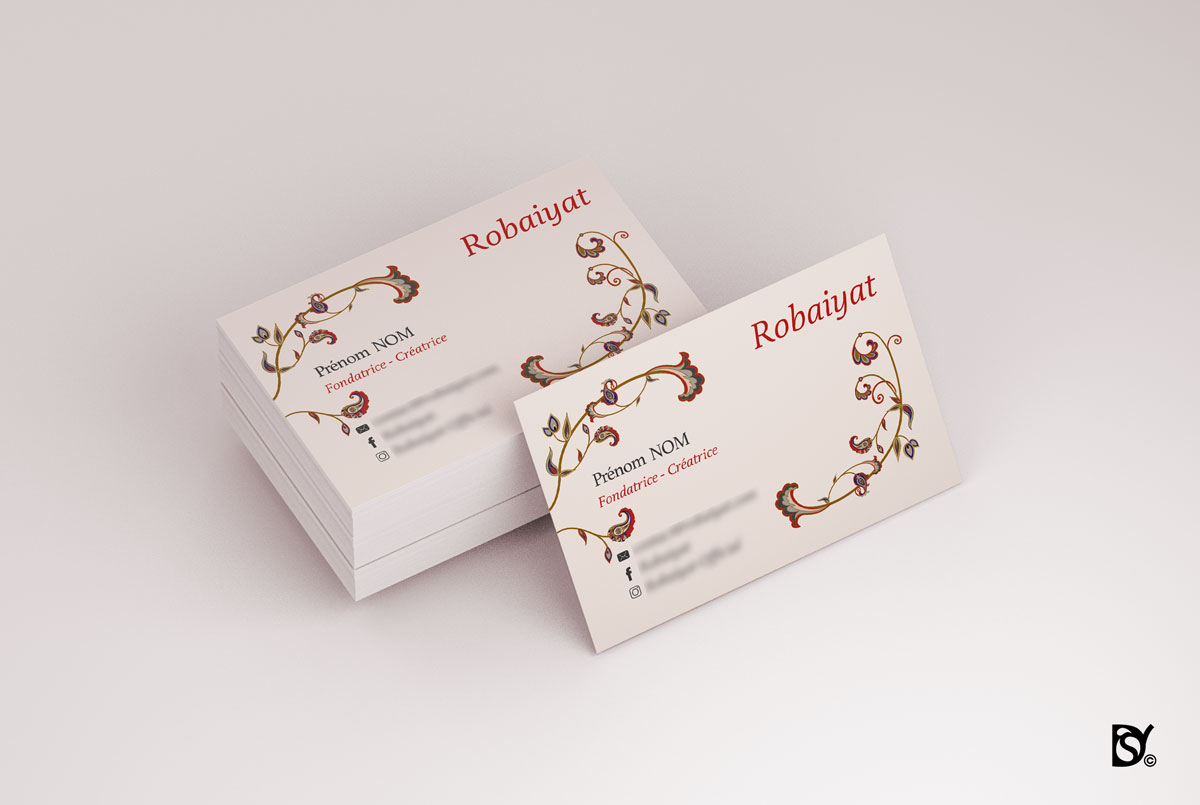 Lorsque Mme BARAKET, la créatrice de la montre ROBAIYAT, a fait appel à nos services, elle avait déjà réalisé son logo. Cependant, elle était bloquée à l’étape du design de la boîte de ses produits, ainsi que pour sa carte de poème ou de remerciement pour les clients et sa carte de visite.